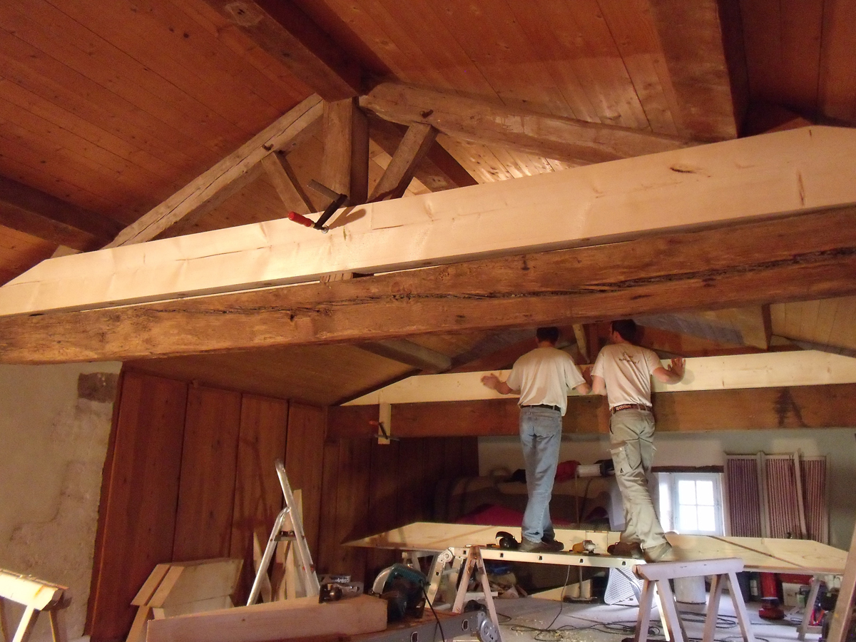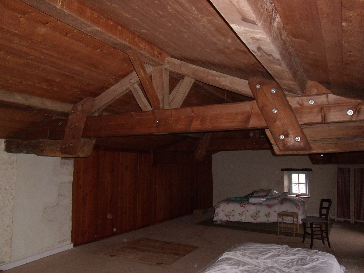Transformation d’une charpente dans une maison typique charentaise à Talmont-sur-Gironde pour créer un passage sous les fermes ↓